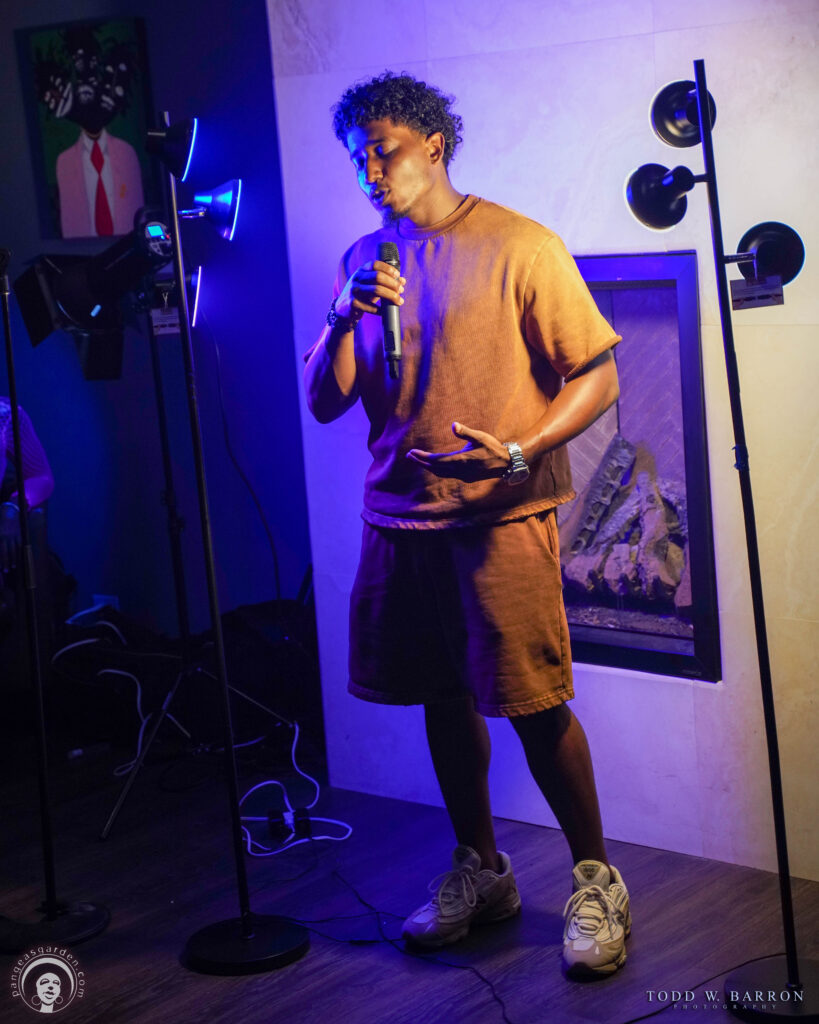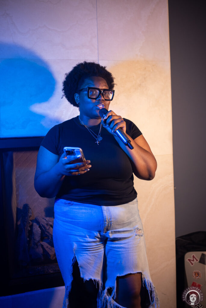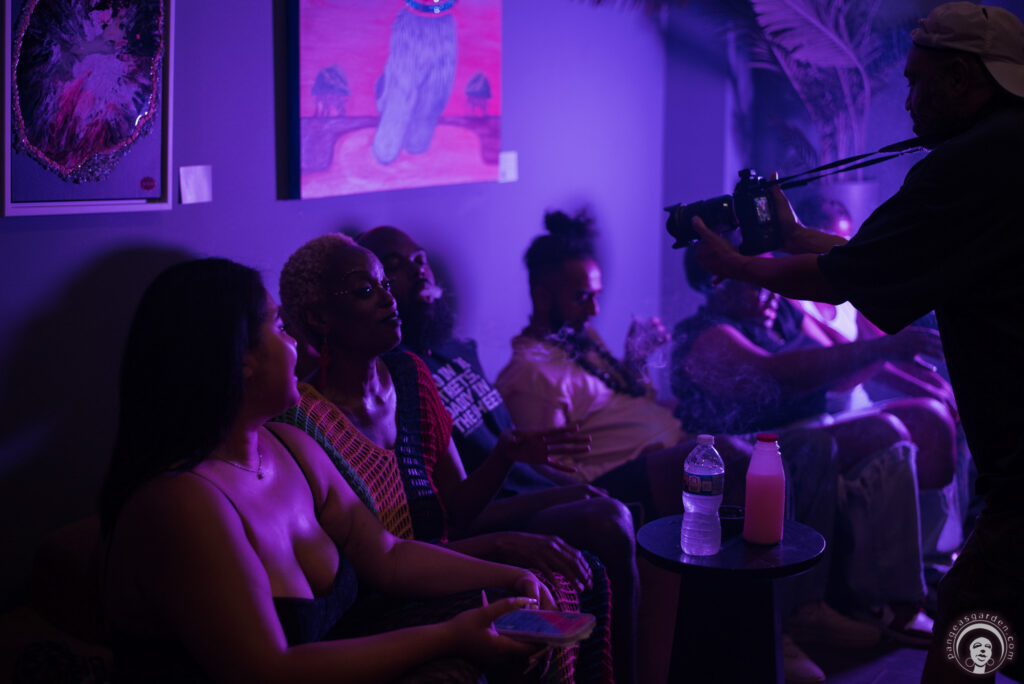 Guests enjoyed a cannabis-friendly environment, where smoke floated softly through the beams of light, adding texture and mood to the space. Live open mic spoken word performances set the tone, filling the room with rhythm and raw emotion. Models, creatives, and everyday people stepped in front of the camera, becoming muses who embodied the energy of the night.