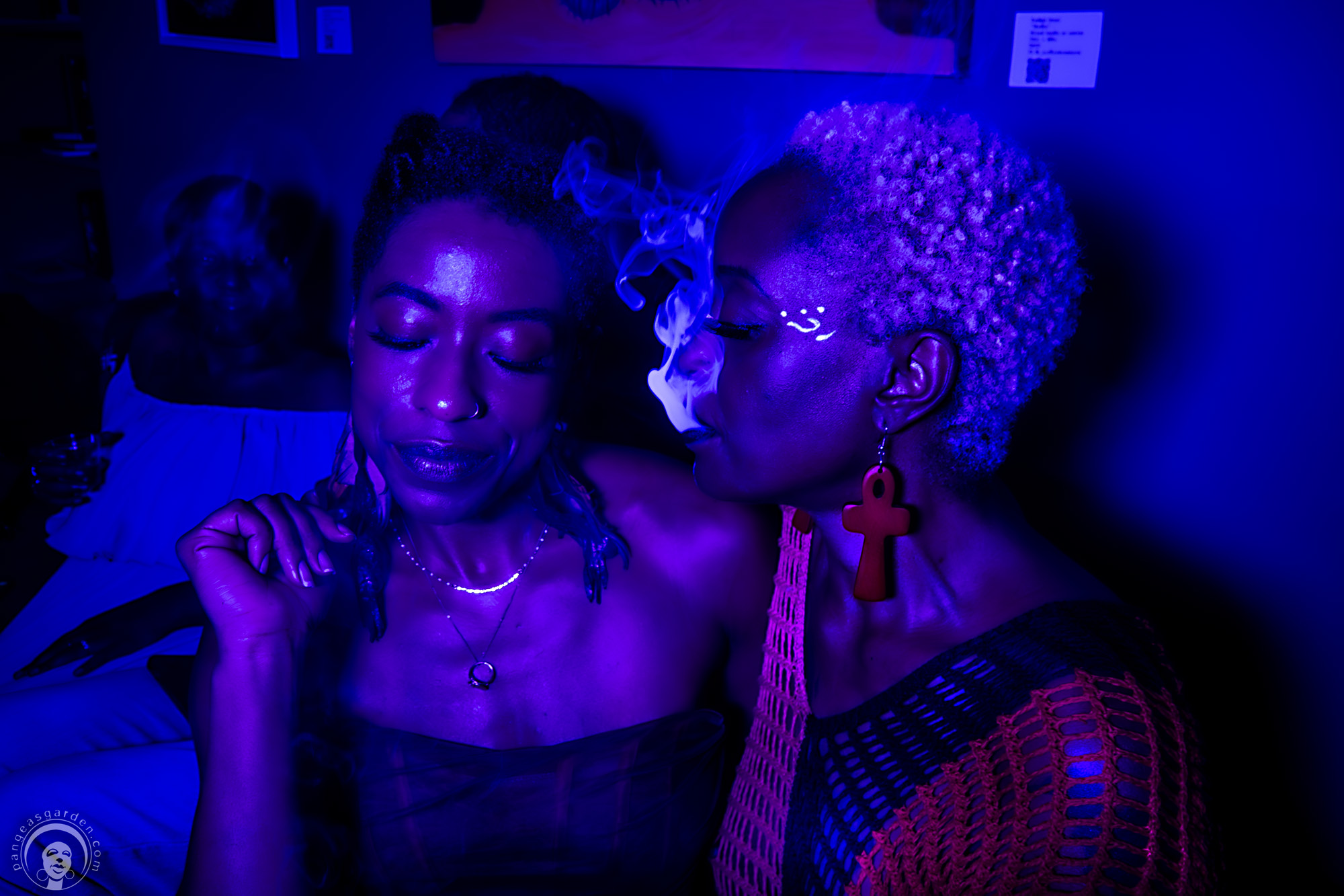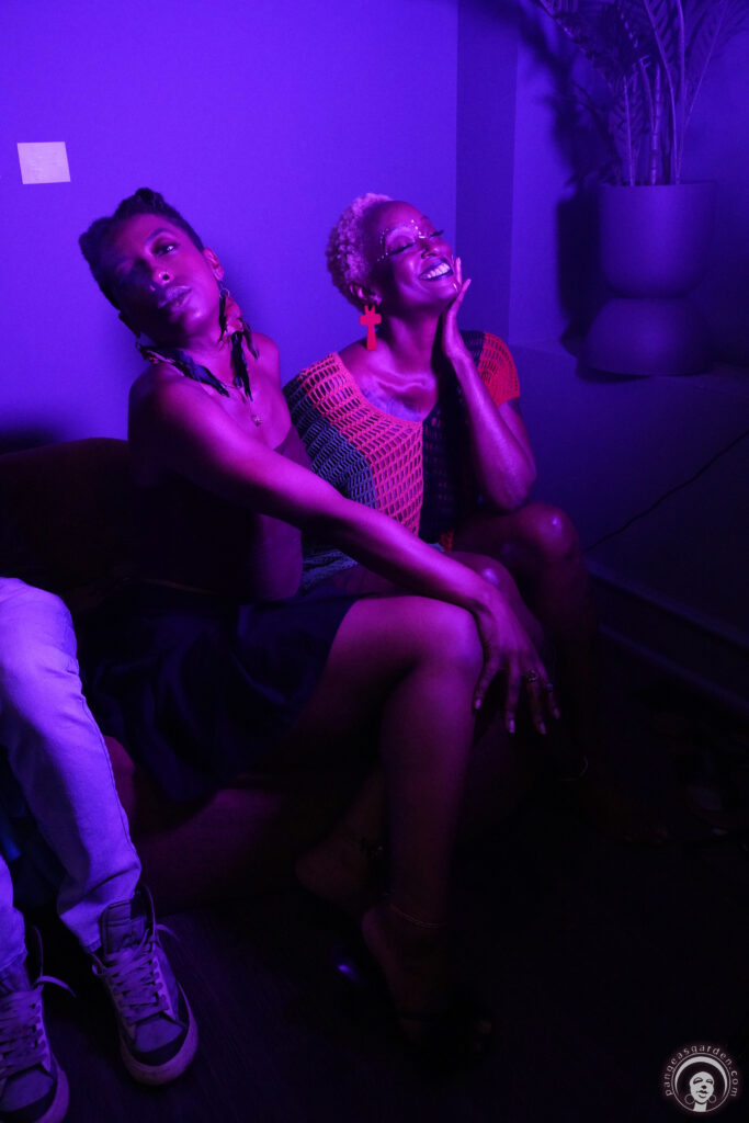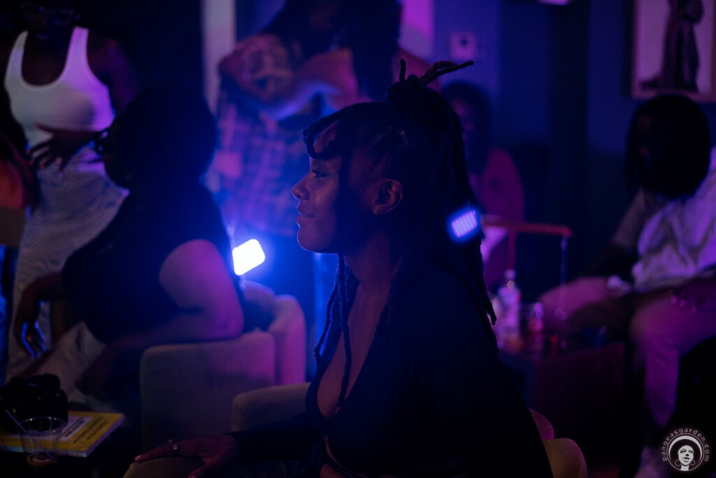 What made this photoshoot event unique was the mix of hobbyists and professional photographers capturing candid, dramatic, and sensual moments. Each shot reflected the energy of the evening: laughter caught mid-burst, strangers connecting in conversation, and friends swaying to the flow of words and music. The colored lights sculpted faces and bodies, transforming ordinary moments into works of art.