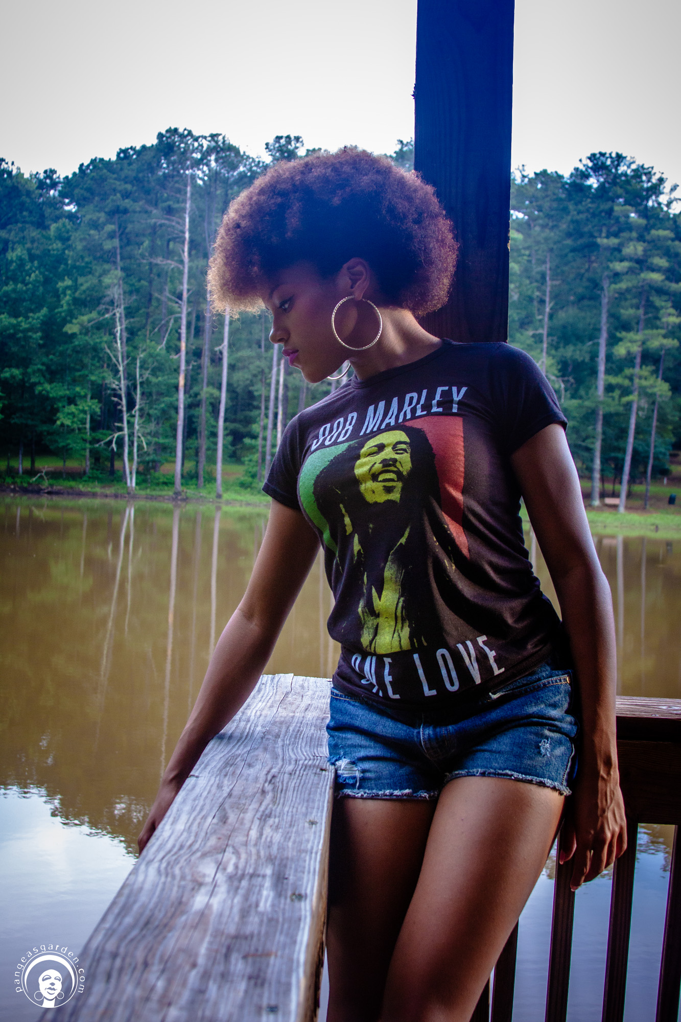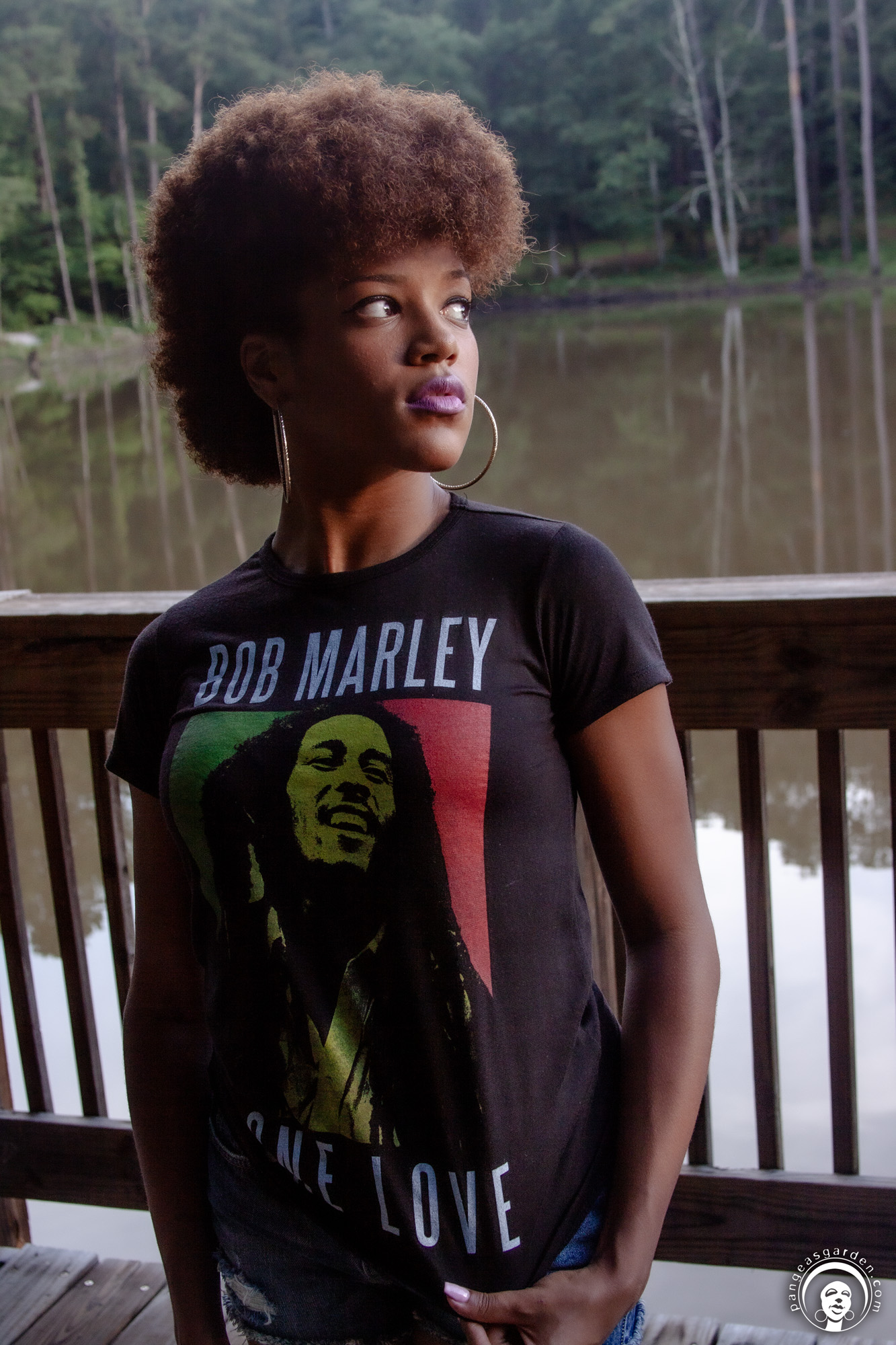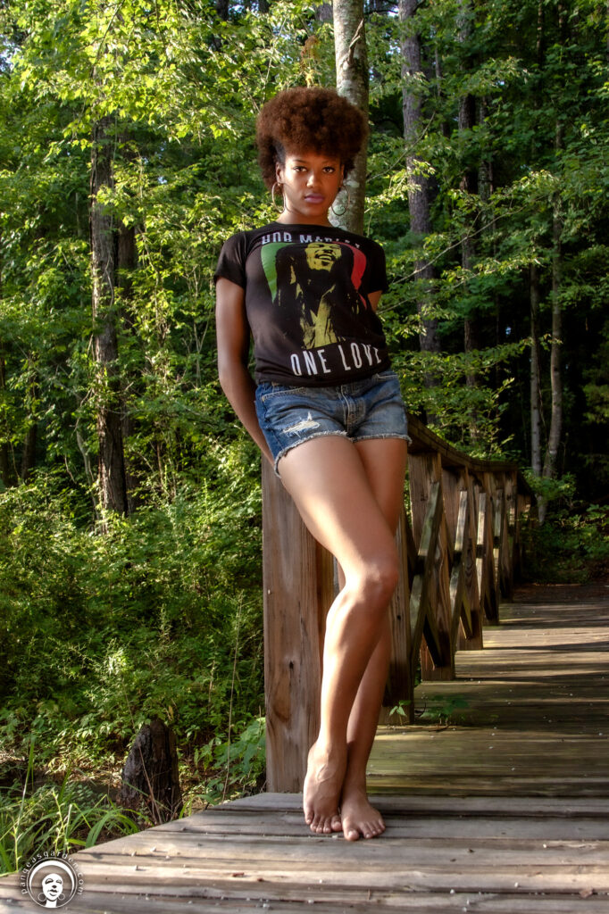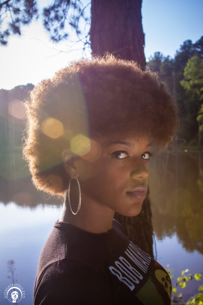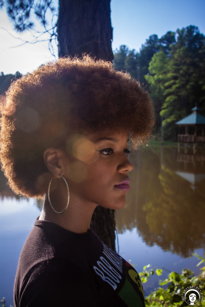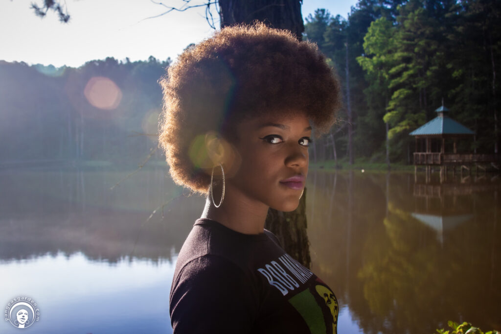“Teresa’s energy is joyful and infectious AND it is the first thing I saw when we met. Her inner beauty shined so bright and all I could think of is how would her melanin embrace the sun. That’s what a Muse, I suppose: provoke your curiosity so that you will actively engage in creativity as celebration. We took a momentary stroll over a still lake in a Georgia suburb. Gazebos stretched out over the waters and the sun danced around her, complementing her fro hawk beauty as I created captures. Her boyfriend was on hand, making sure his girl was safe and I asked him to participate in a few pics. Their love was touching and authentic; their embrace and support of one another beautiful. All in all, I look forward to what’s next.”