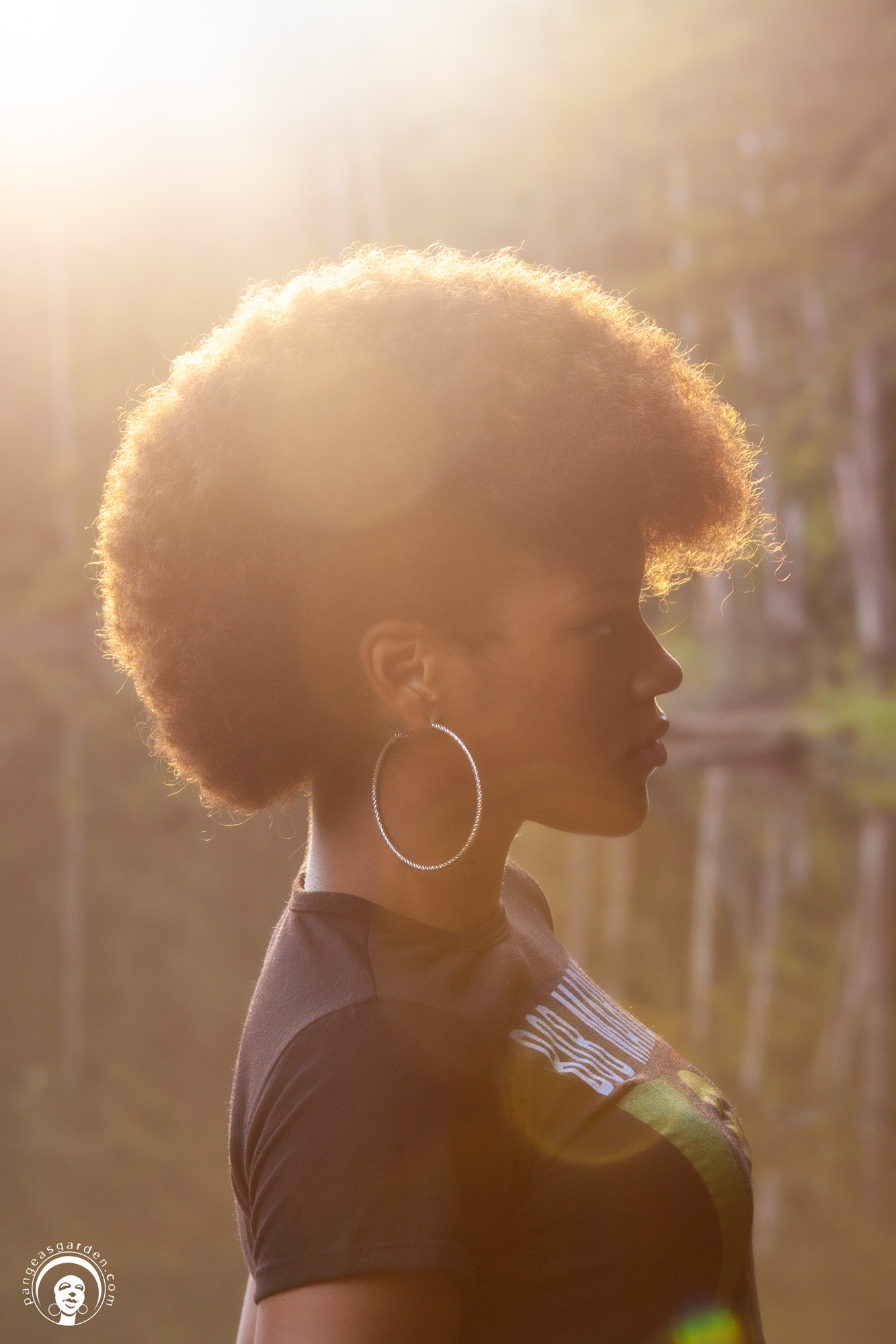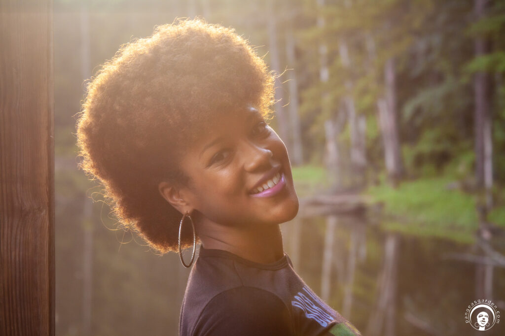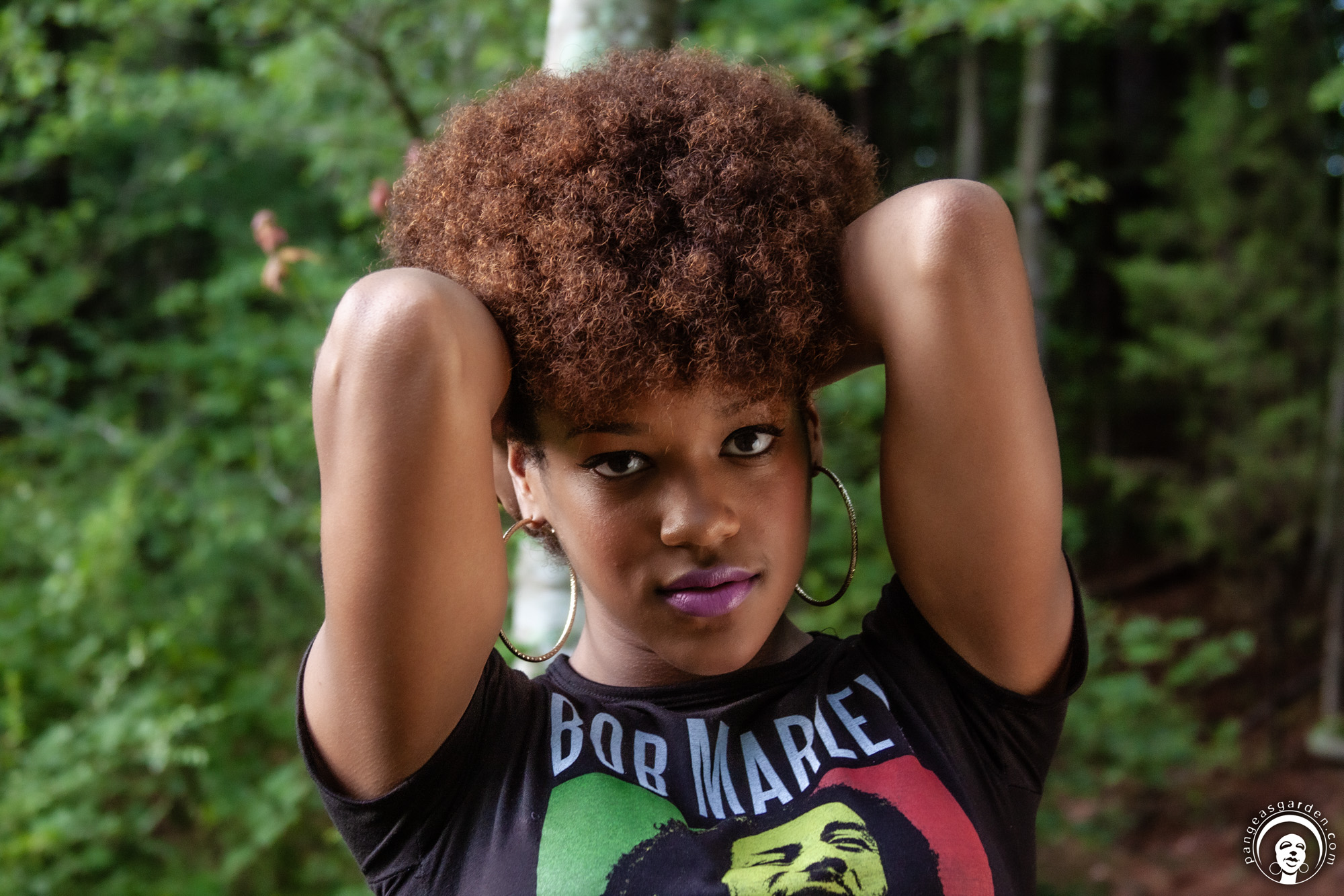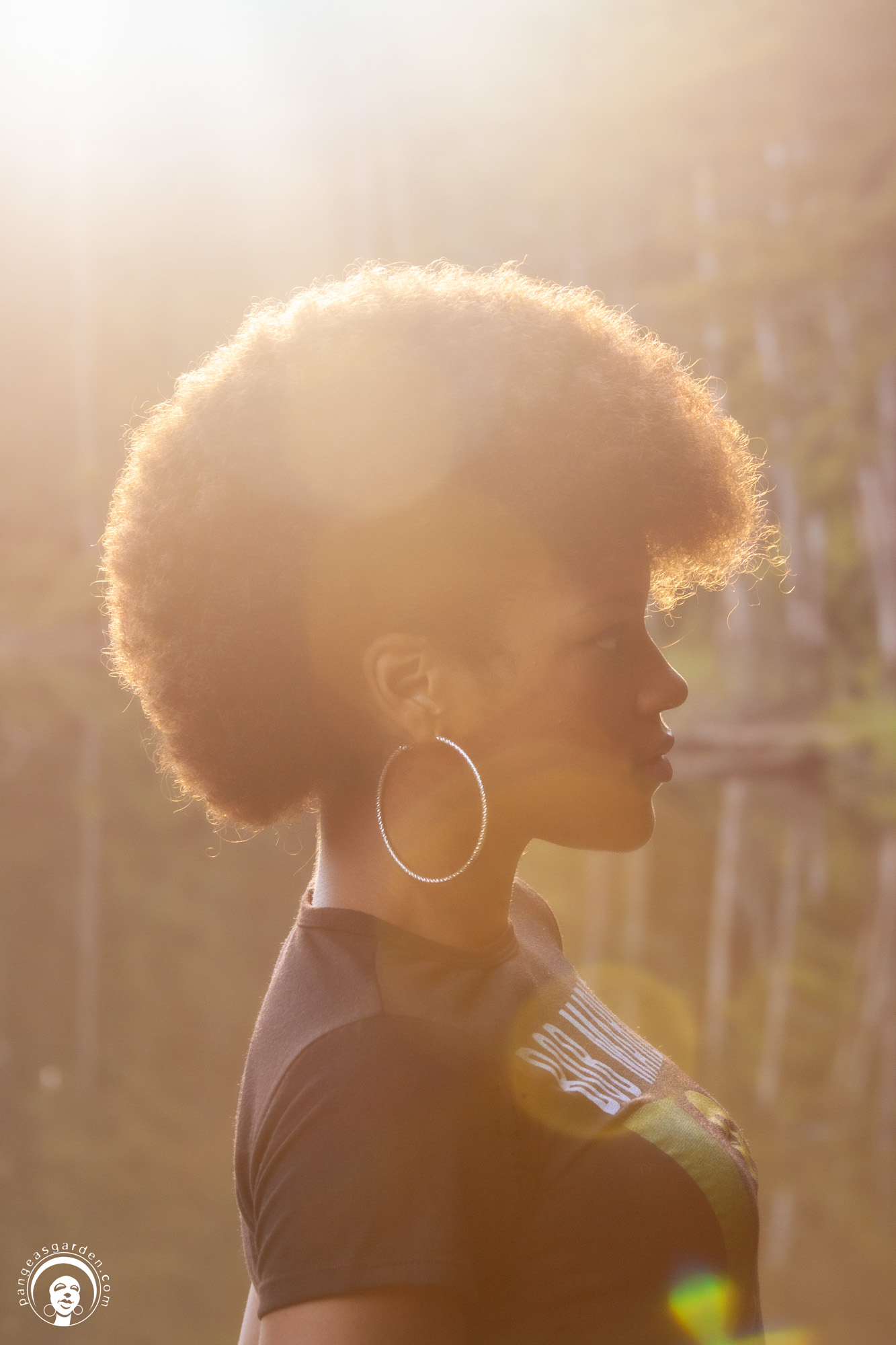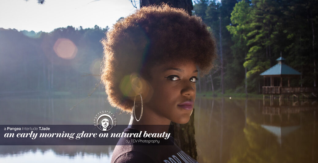 “Teresa’s energy is joyful and infectious AND it is the first thing I saw when we met. Her inner beauty shined so bright and all I could think of is how would her melanin embrace the sun. That’s what a Muse, I suppose: provoke your curiosity so that you will actively engage in creativity as celebration. We took a momentary stroll over a still lake in a Georgia suburb. Gazebos stretched out over the waters and the sun danced around her, complementing her fro hawk beauty as I created captures. Her boyfriend was on hand, making sure his girl was safe and I asked him to participate in a few pics. Their love was touching and authentic; their embrace and support of one another beautiful. All in all, I look forward to what’s next.”